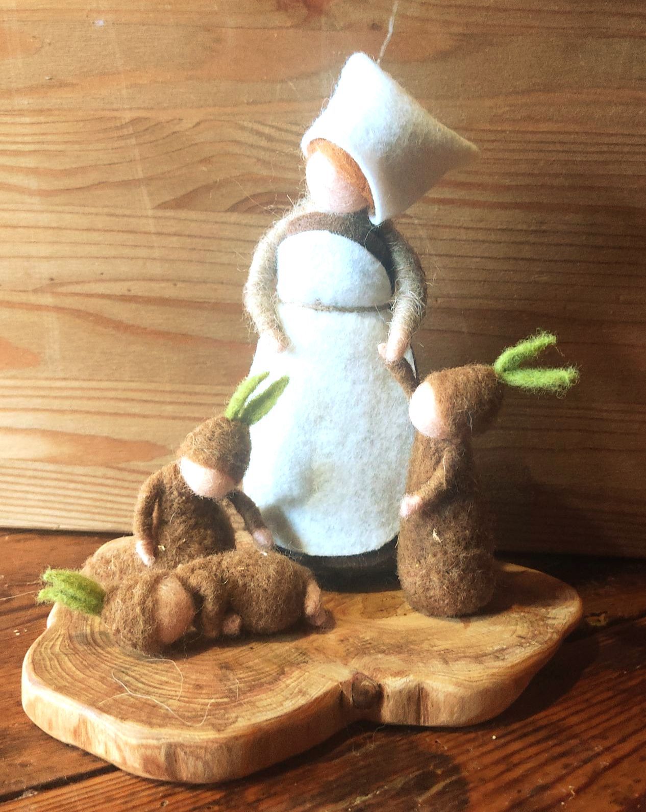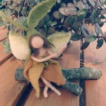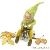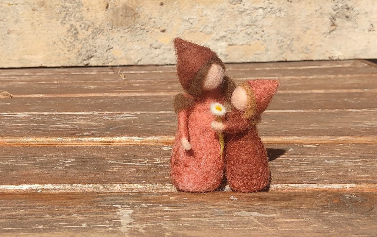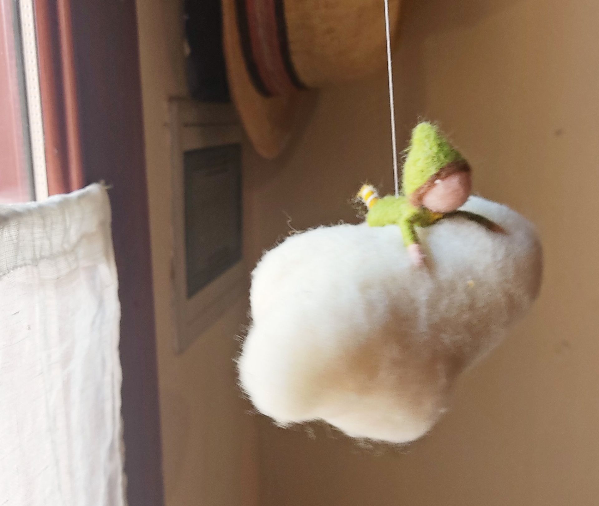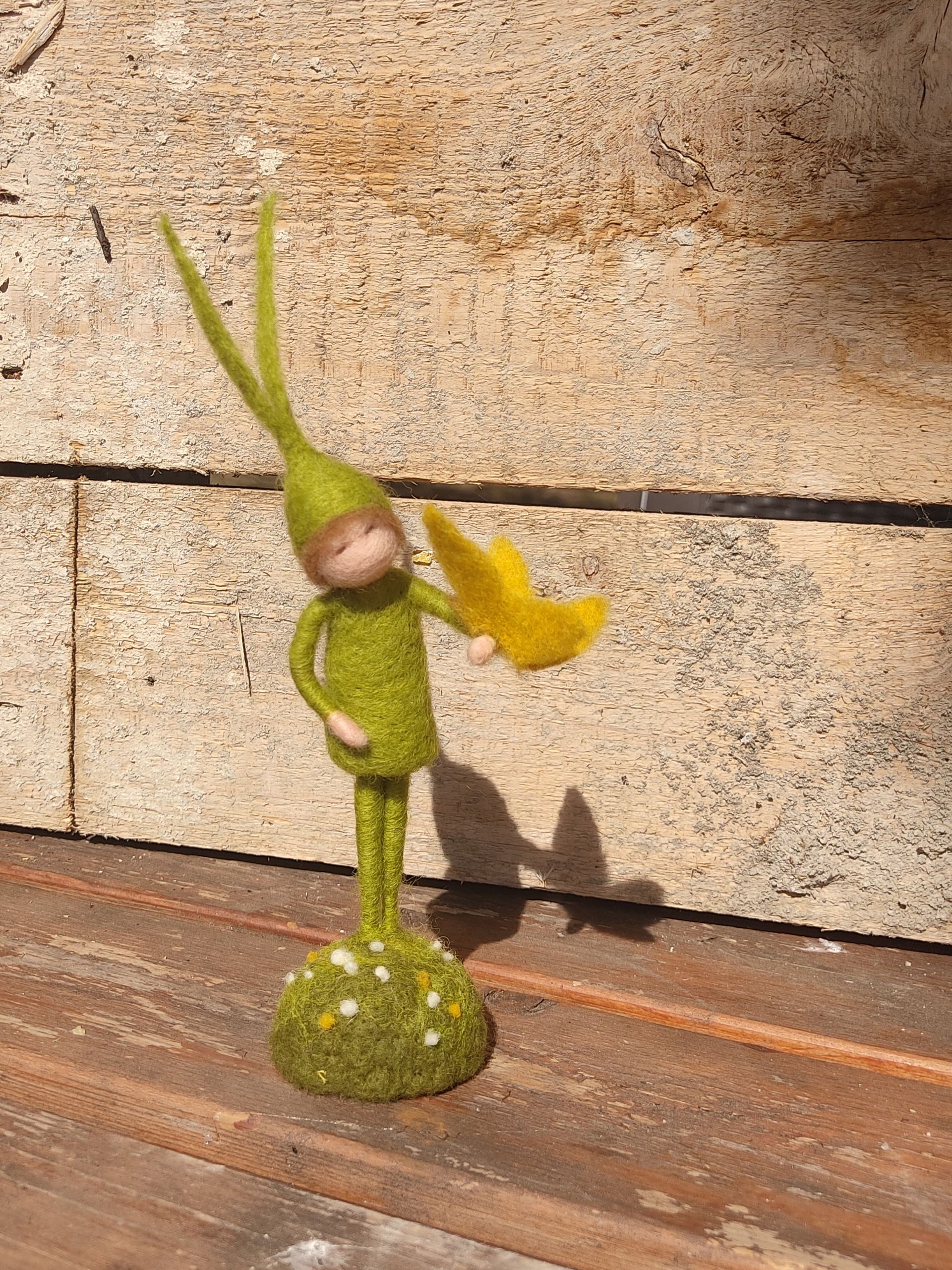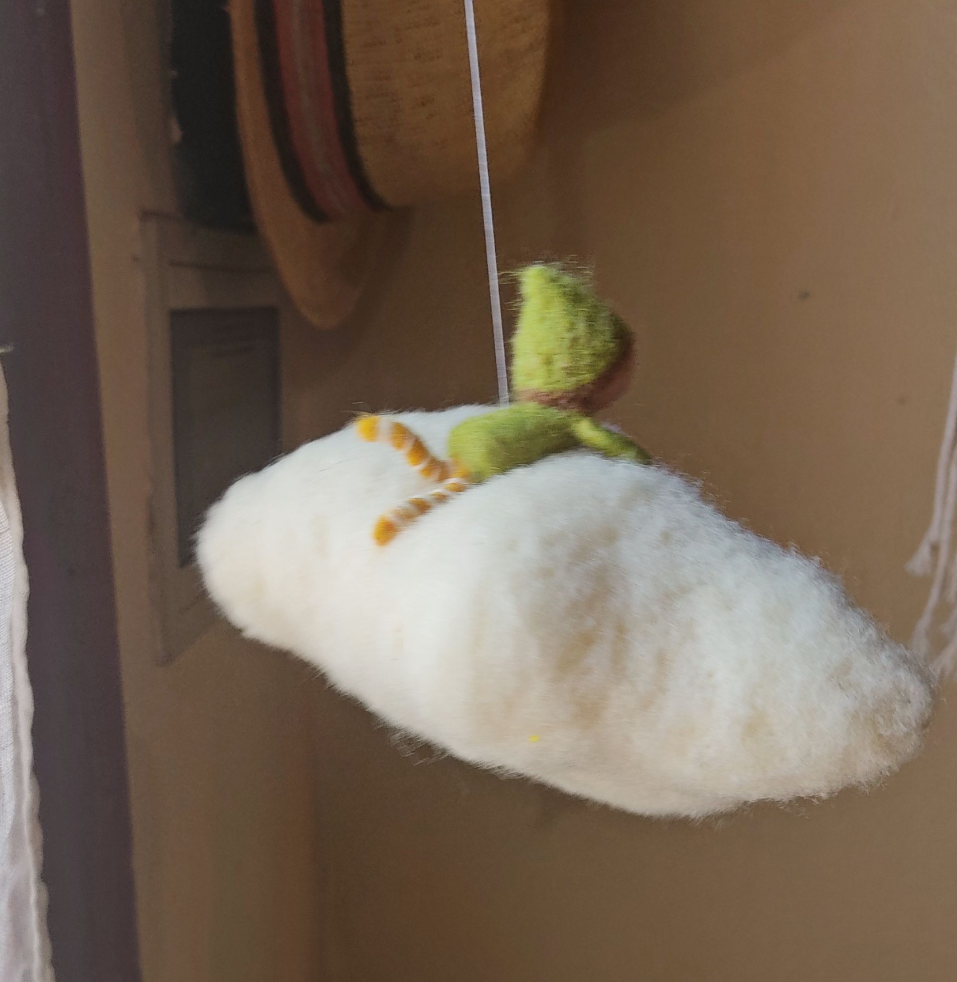 Figura hecha artesanalmente con lana cardada de oveja, fieltrada manualmente.
