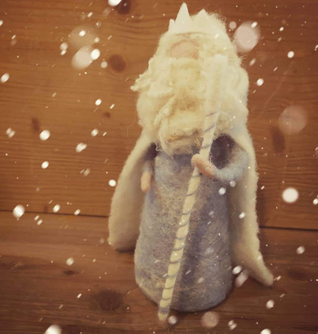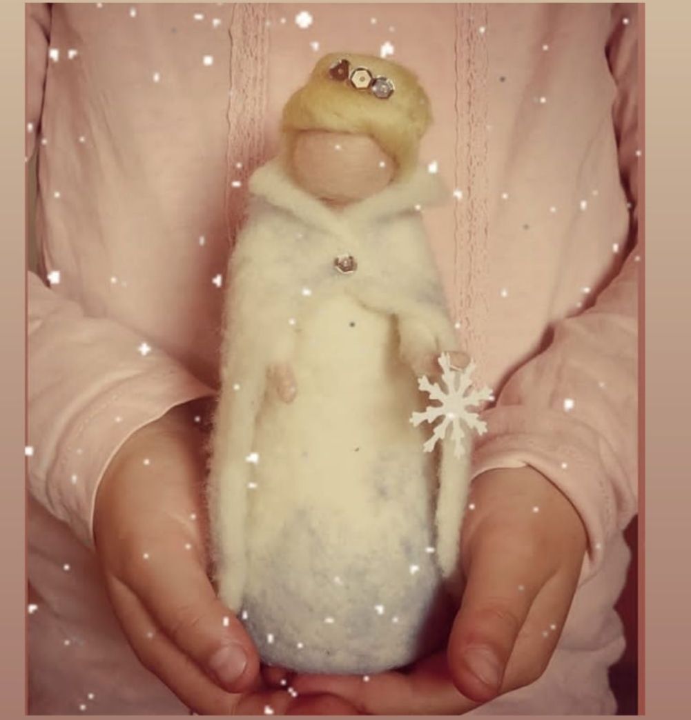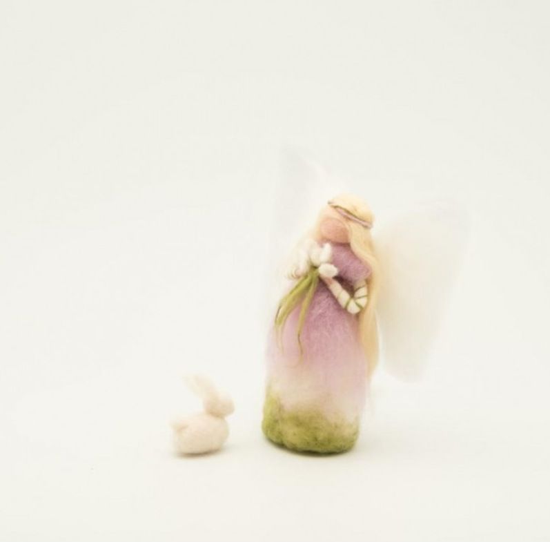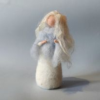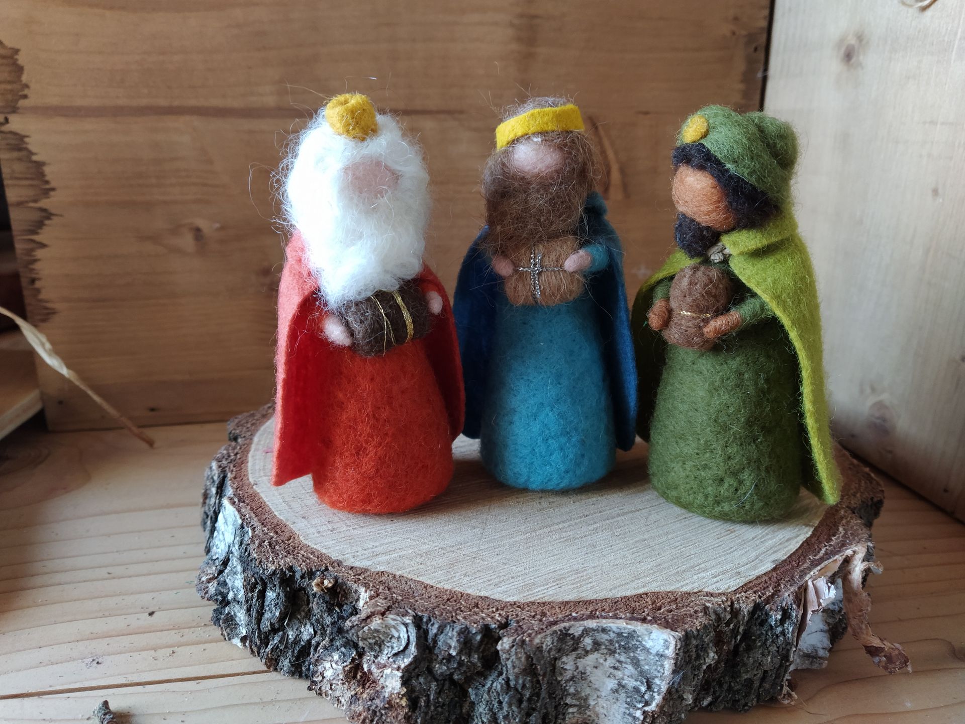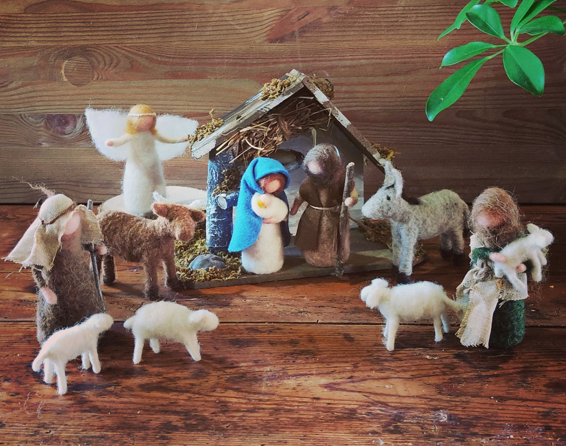 Figura hecha artesanalmente con lana cardada de oveja, fieltrada manualmente.