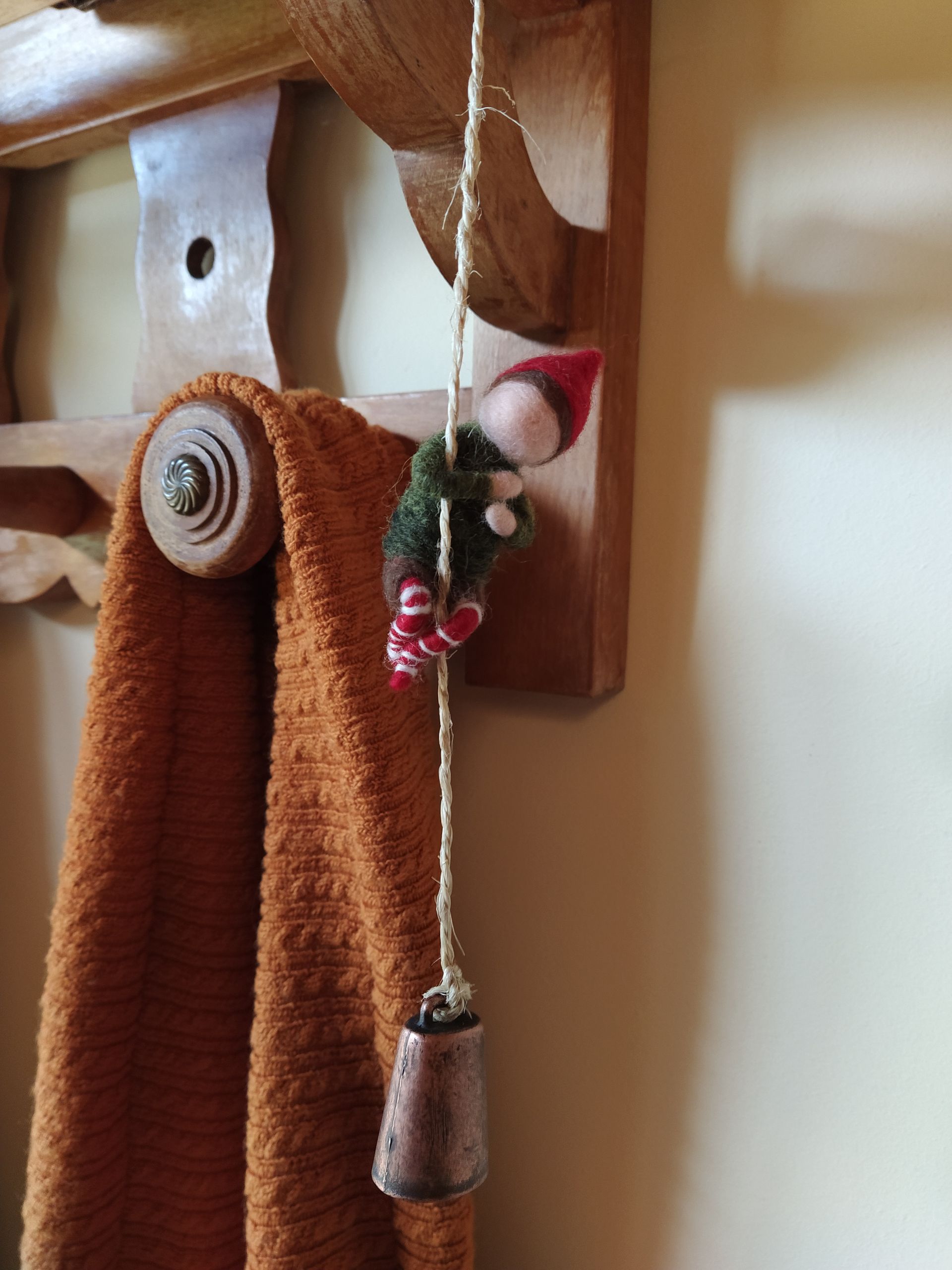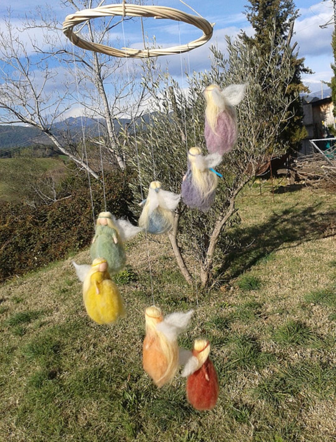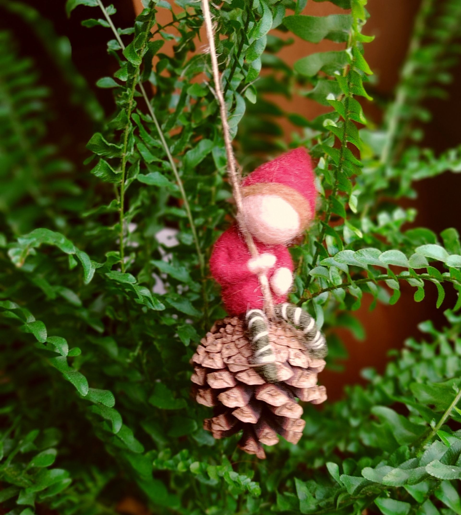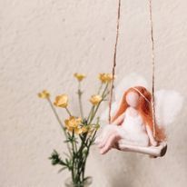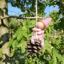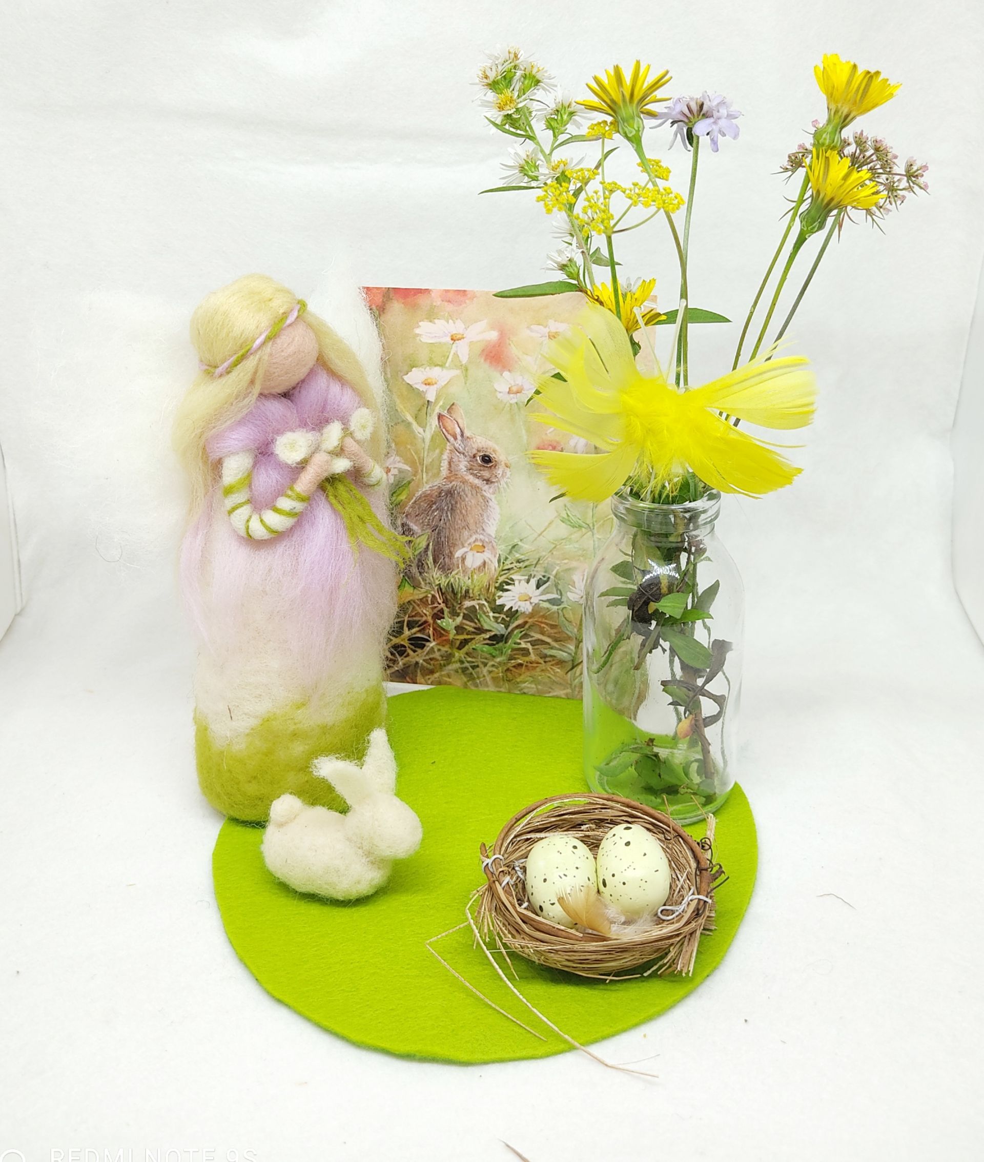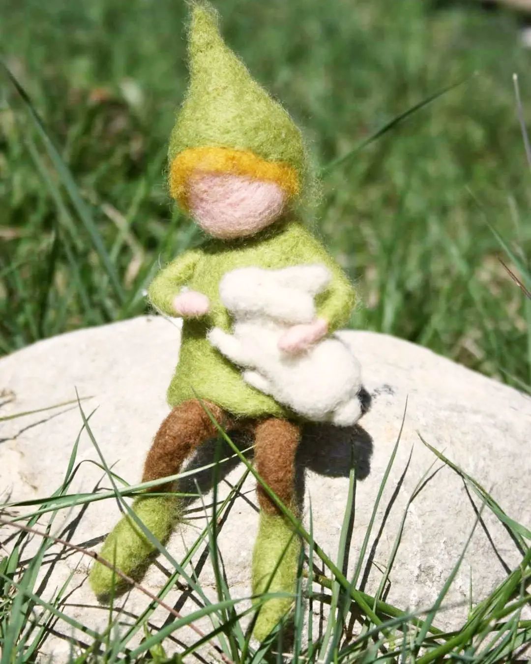 Figura hecha artesanalmente con lana cardada de oveja, fieltrada manualmente.
