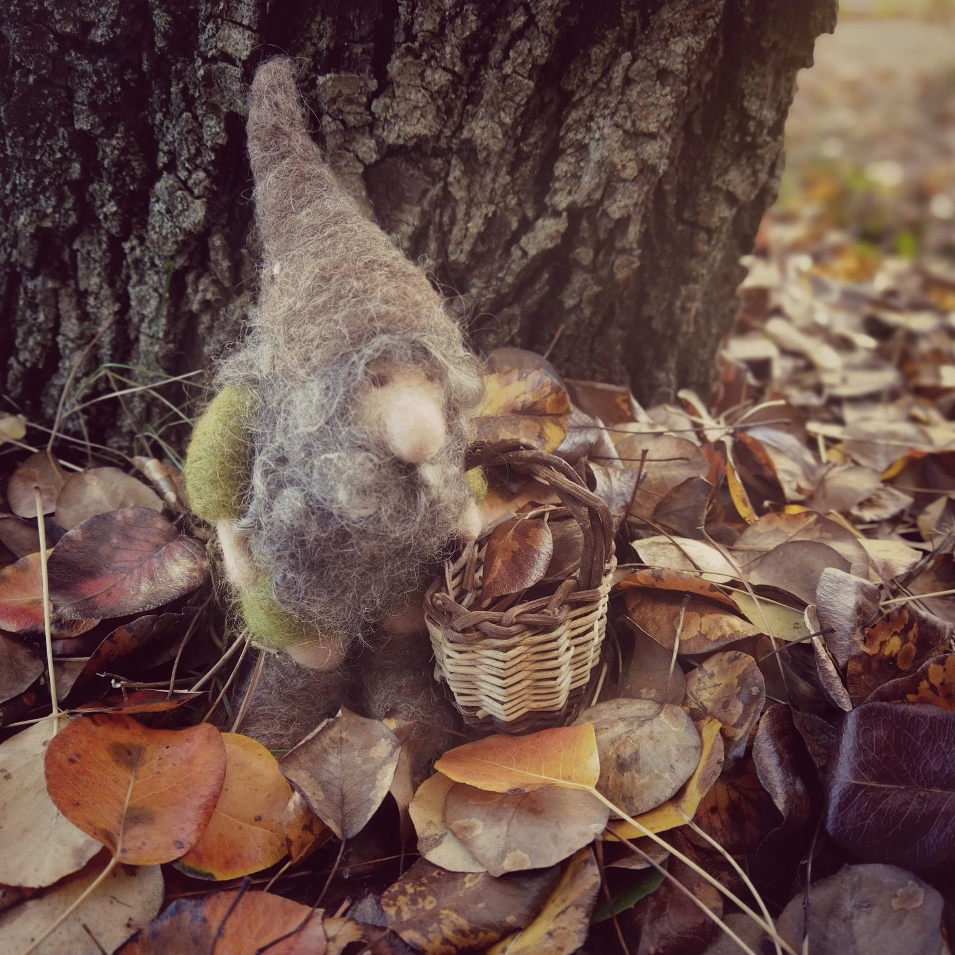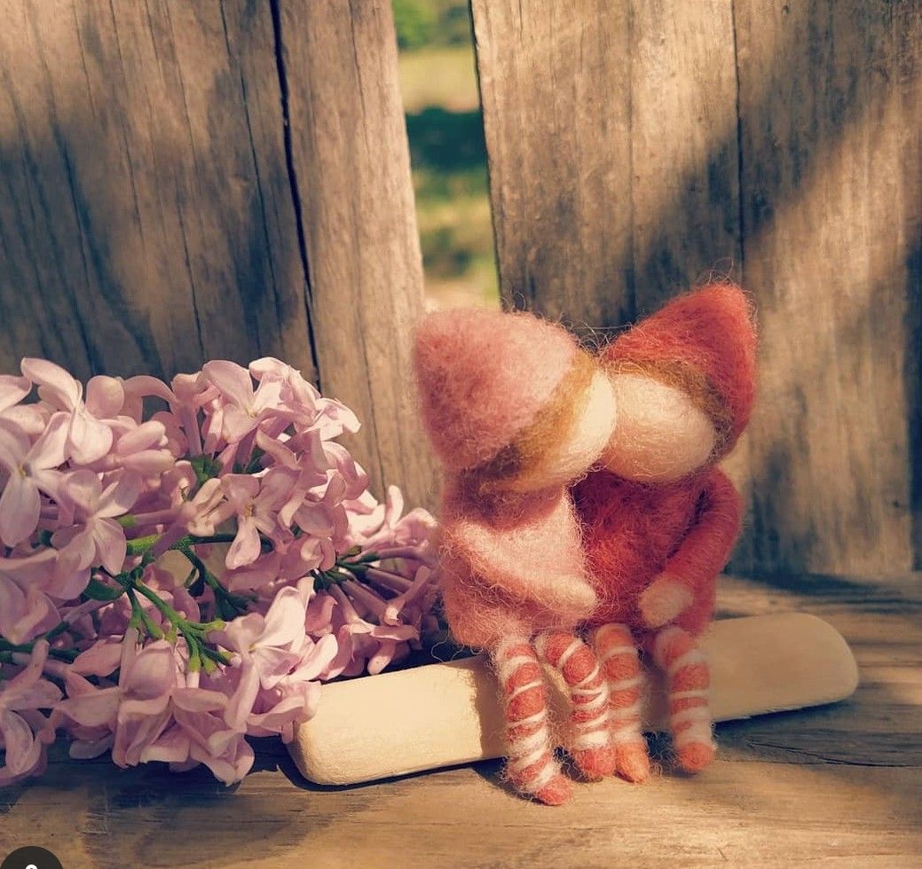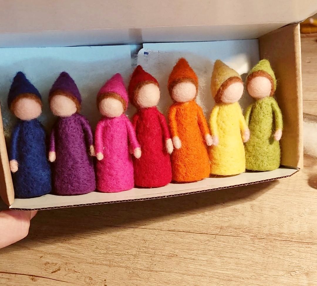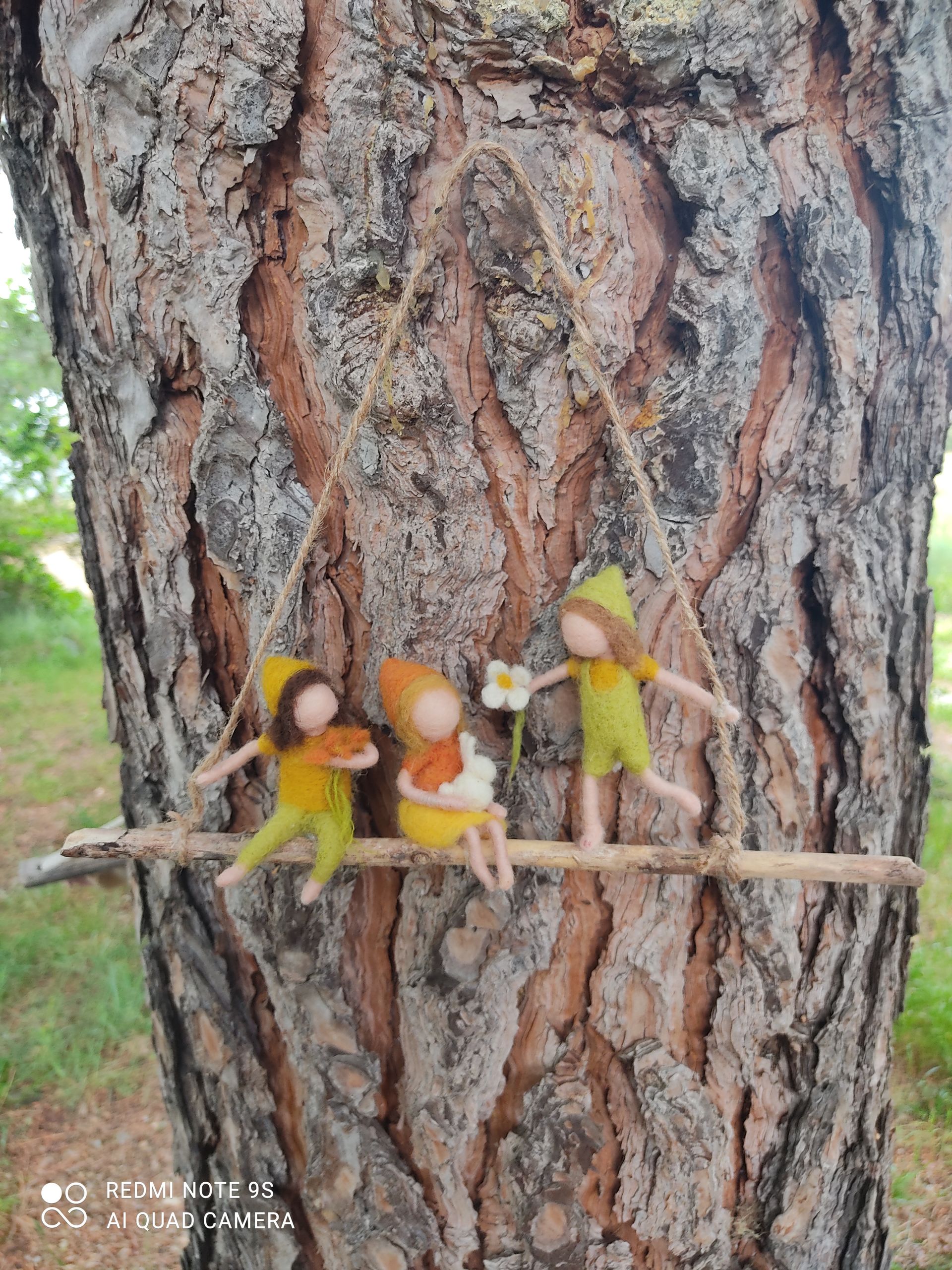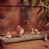 Figura hecha artesanalmente con lana cardada de oveja, enfieltrada manualmente con una aguja de enfieltrar.