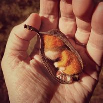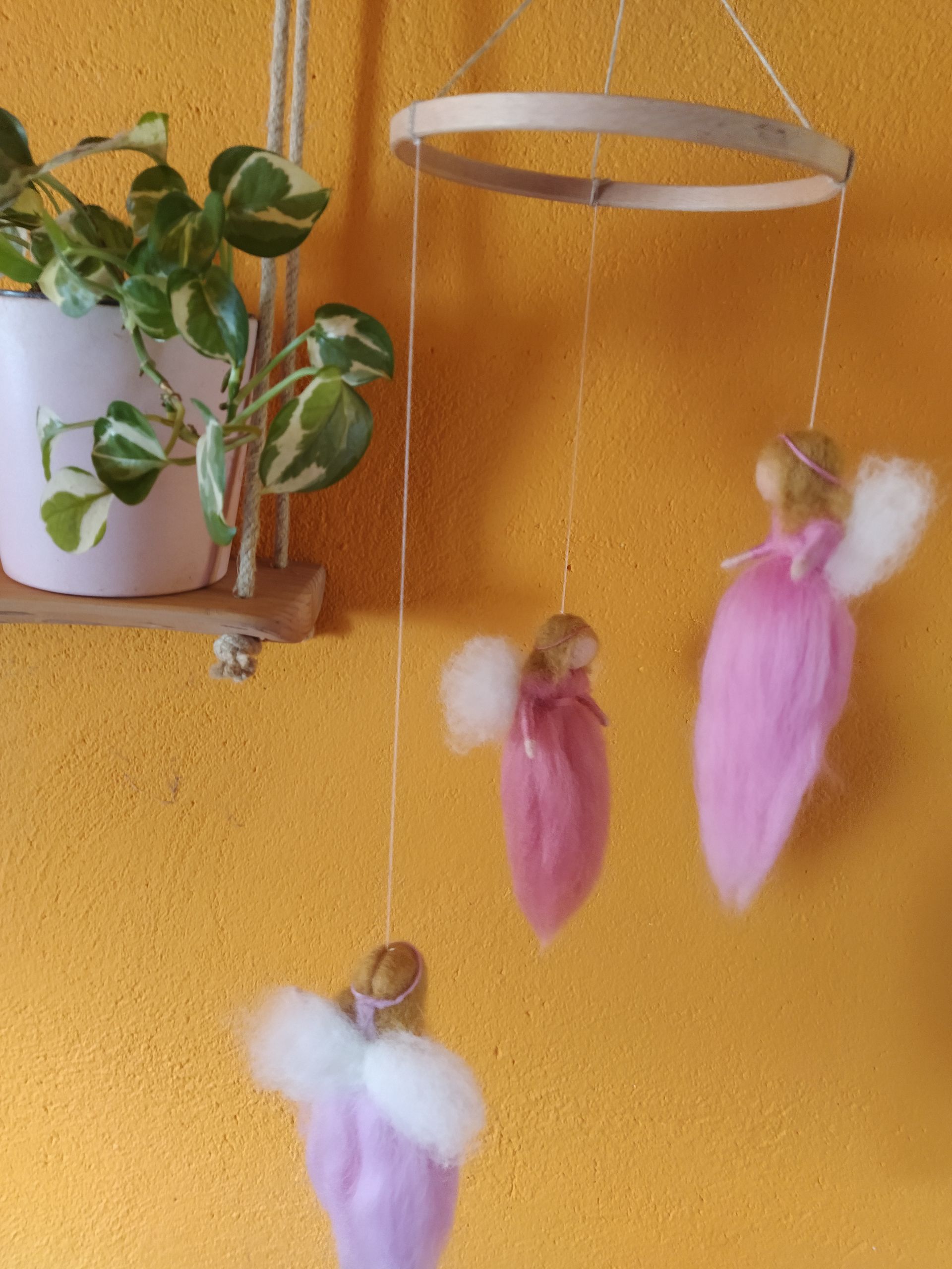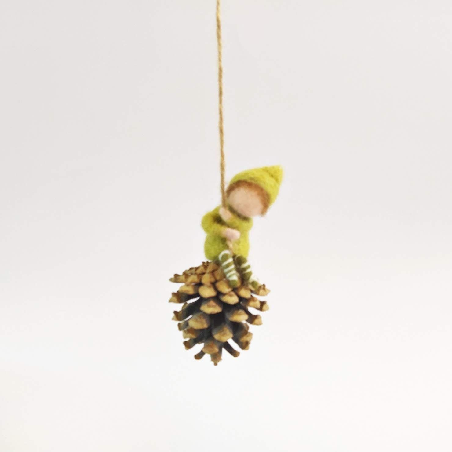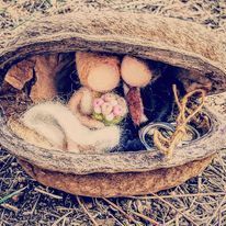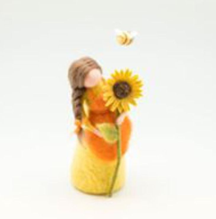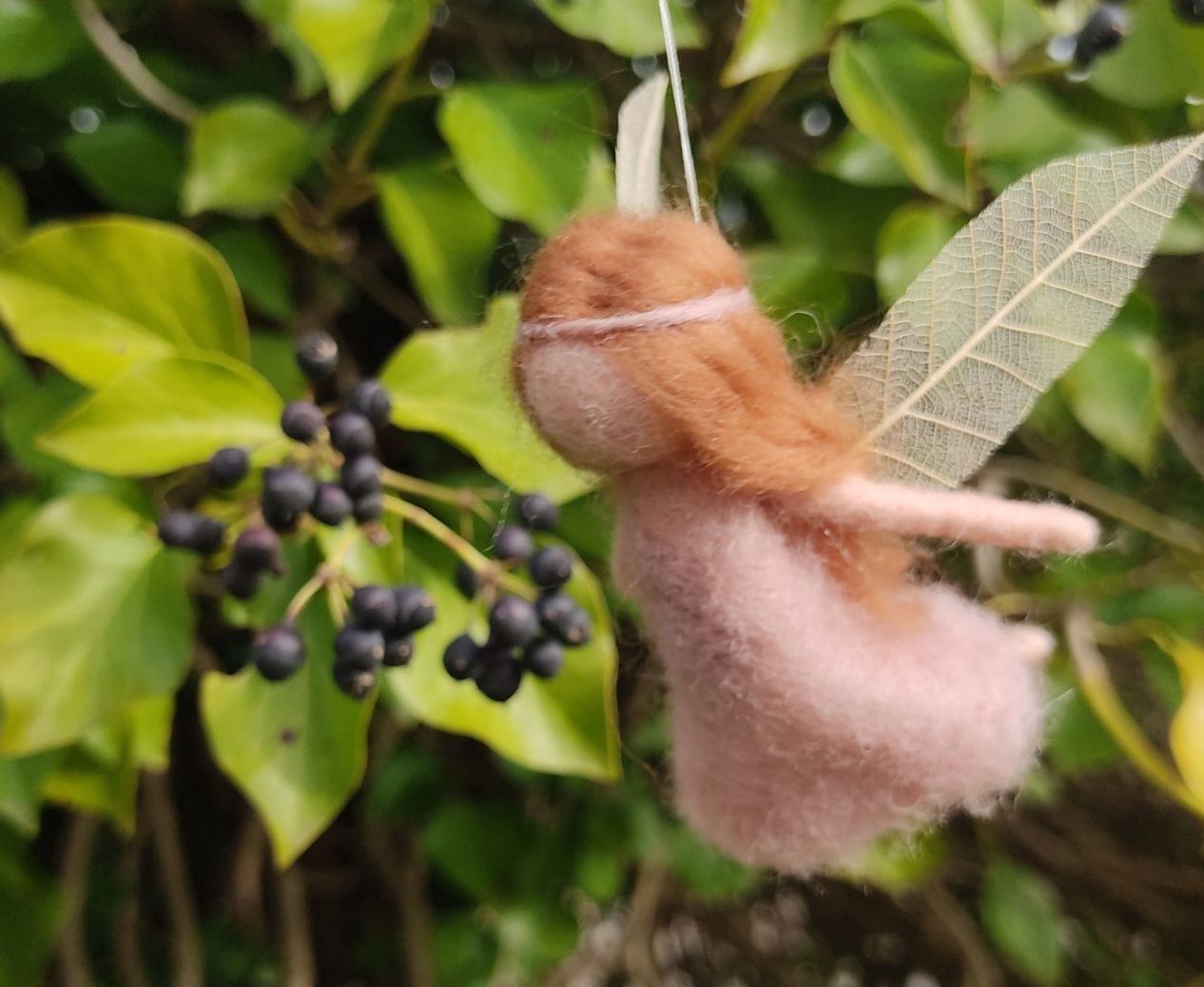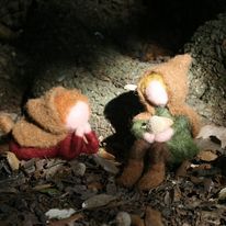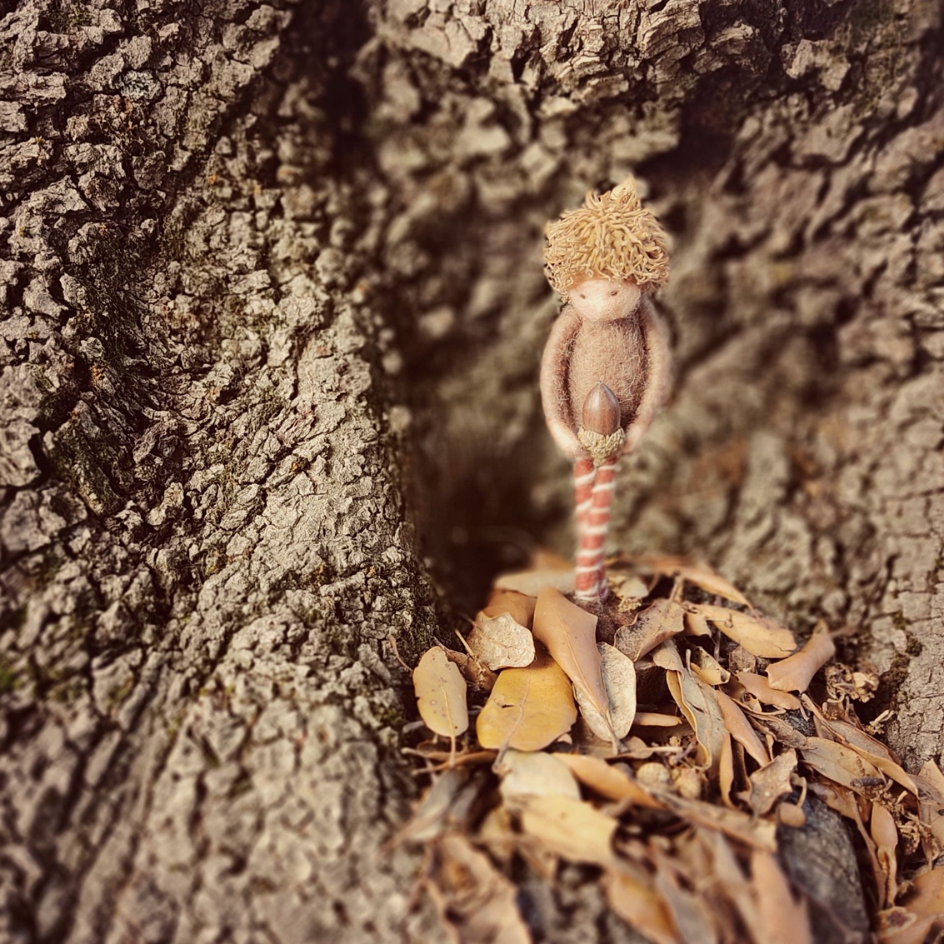 Figura hecha artesanalmente con lana cardada de oveja, enfieltrada manualmente con una aguja de enfieltrar.