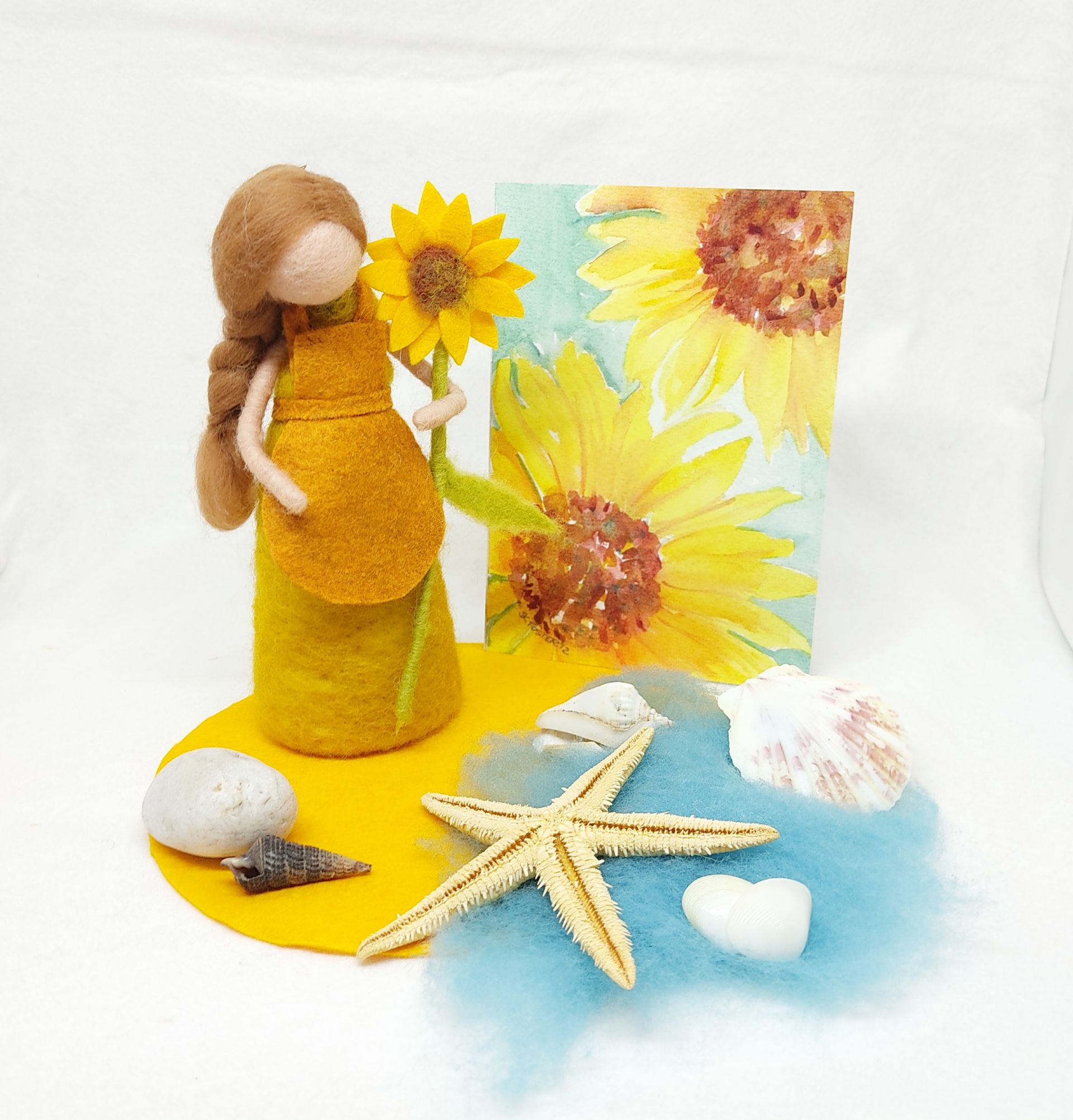 La Caja de estación de verano que le ofrezco contiene los elementos principales para empezar a crear tu espacio para esta estación. A partir de aquí ya medida que vaya adelantando la estación puedes ir añadiendo diferentes elementos que tengas en casa o que encuentres en la naturaleza.. Un cuento de verano, una espiga, una fotografía.... Siempre manteniendo la belleza, equilibrio y magia del espacio.